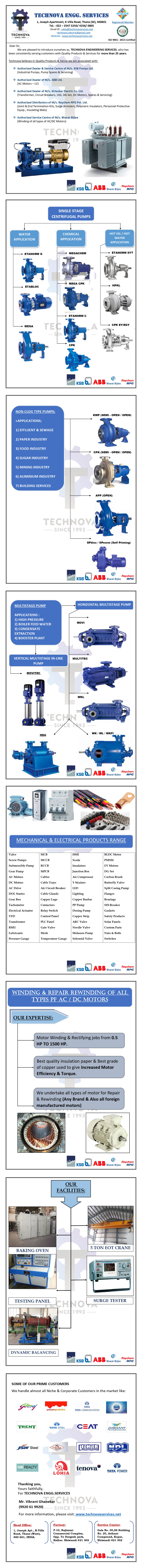 Established in the year 1993 mainly as Authorized Dealer of ‘Kirloskar Electric Co Ltd' an ISO 9001 Company for AC Motors, DC Motors, Transformers. Further we added product basket by becoming Authorized Dealer & Authorized Service Centre.